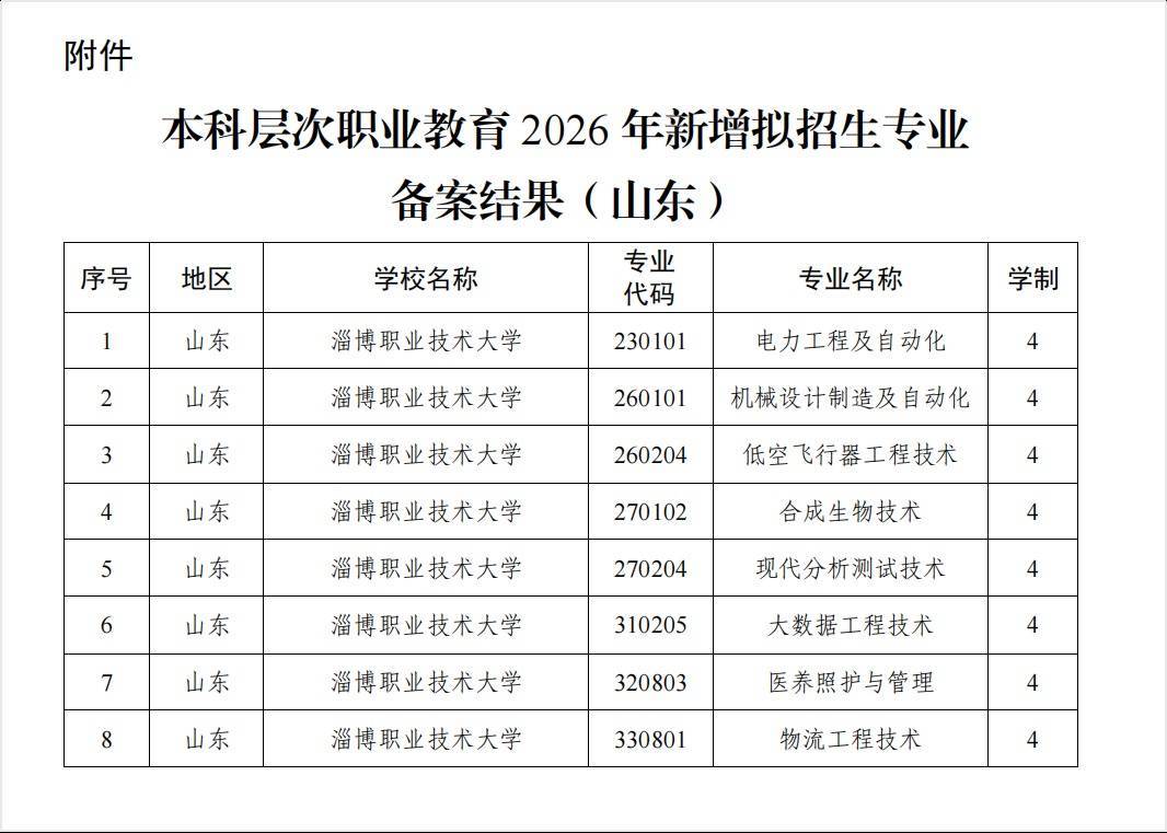 据了解,2025年2月,教育部批准以淄博职业学院为基础设立淄博职业技术大学,首批设置电气工程及自动化、汽车工程技术、物联网工程技术、应用化工技术、制药工程技术、建筑工程等6个四年制职业本科专业。至此,学校四年制职业本科招生专业增至14个,专业结构布局进一步优化,服务国家战略和区域产业发展的能力持续增强。