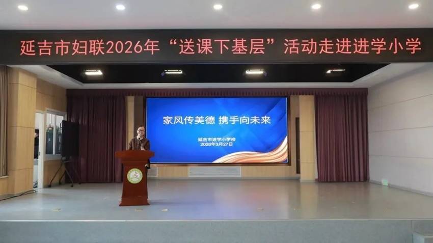 近日,延吉市妇联2026年“送课下基层”活动在延吉市进学小学拉开帷幕。首场讲座以“家风传美德 携手向未来”为主题,将优质家庭教育资源直接送进基层,推动优良家风建设,凝聚家校育人合力。全校教师与家长共同参与了此次活动。