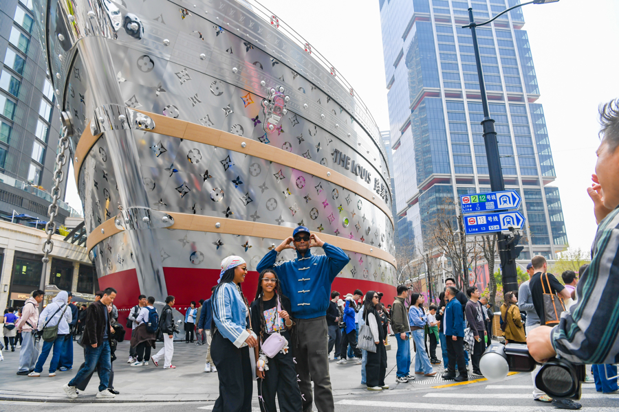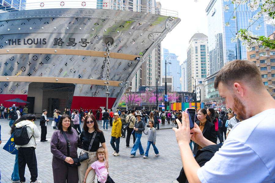 这个清明假期,兴业太古汇的路易威登全新概念地标——“路易号”也吸引了大量外国游客前来拍照打卡。