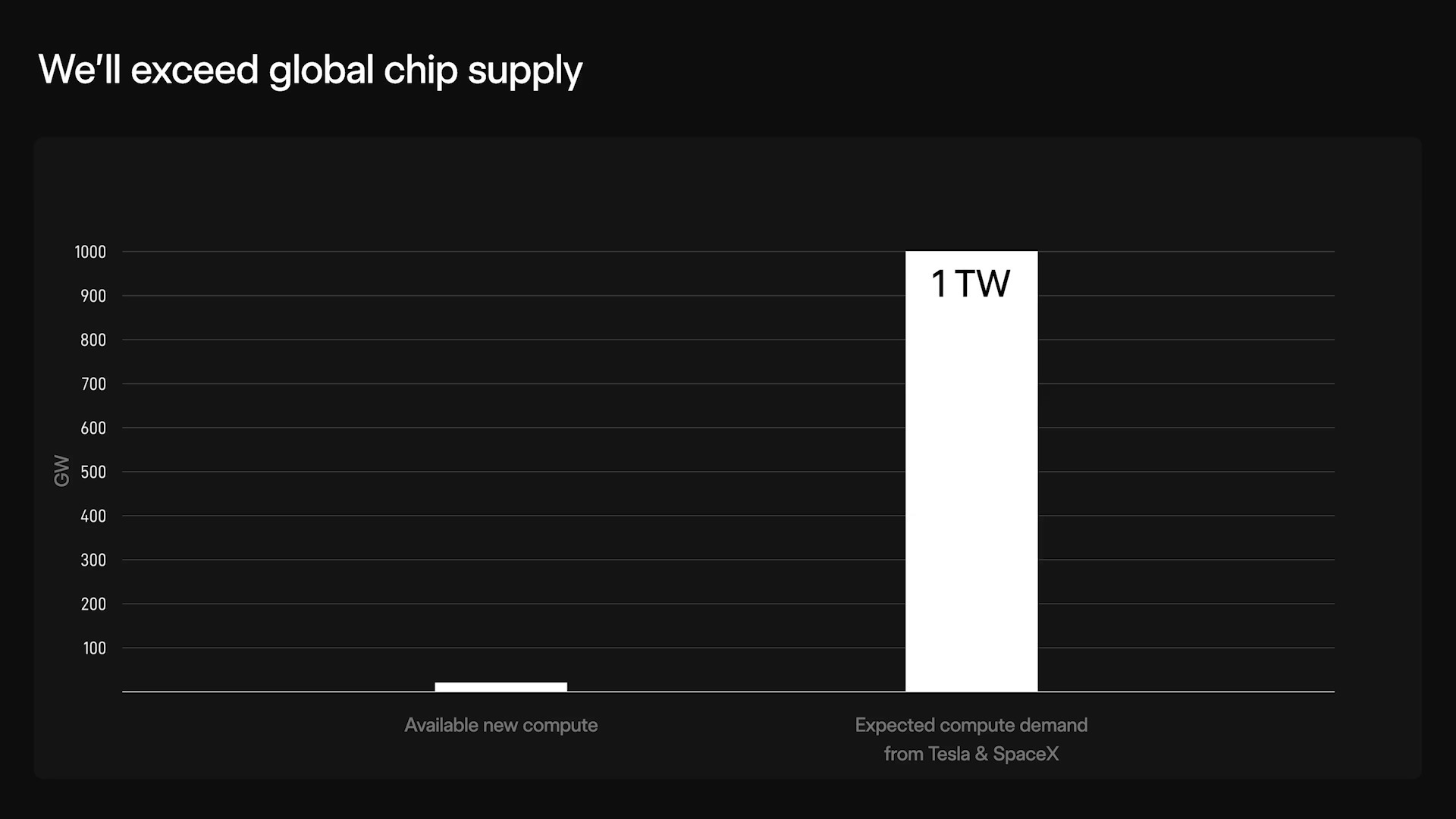 “TERA”正是太瓦(Terawatt)的词根,也是马斯克给这个项目最直白的命名宣言,特斯拉历来的超级工厂叫Gigafab(吉工厂),而1太瓦=1000吉瓦,Terafab直接把规模拉到了1000倍。